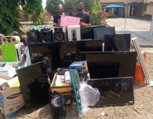 On January 20, 2025, police operatives apprehended two burglary suspects, Moses Godwin Ndiong and Abraham Godwill Eshiet, in Eket Local Government Area. Their arrest followed a complaint about a break-in at an apartment. The suspects were found with burglary tools, and stolen items recovered included several smart TVs, a generator, home appliances, an automobile, and valuable personal belongings.