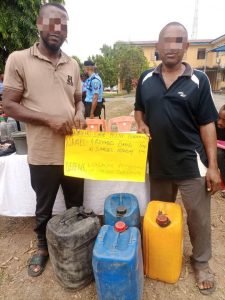 Two men, Richard Daniel and Samuel Monday, were arrested in Esit Eket for transporting ethanol used in producing fake and illicit alcoholic beverages.