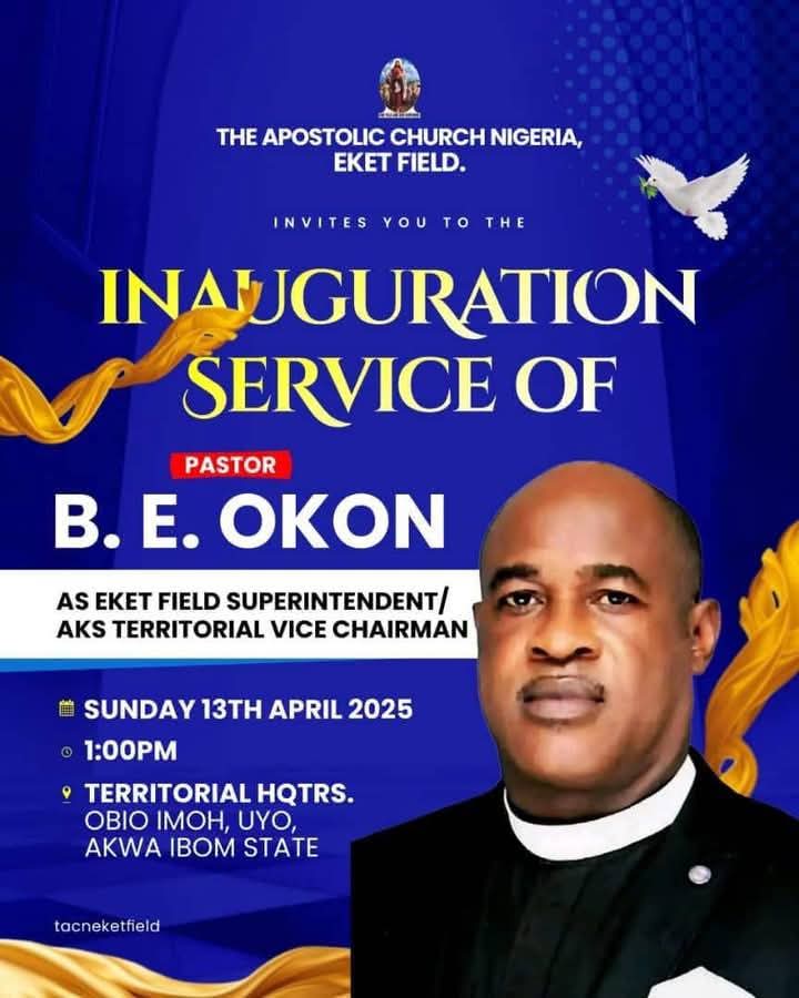 In what observers are calling a divine boardroom shuffle, The Apostolic Church, Nigeria has announced that Pastor Benjamin E. Okon is set to ascend to not one, but two glorious thrones as Eket Field Superintendent and the Akwa Ibom State Territorial Vice Chairman.