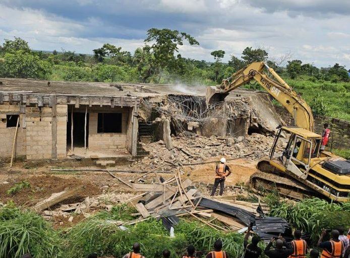 On Thursday, the Enugu State Government demolished a suspected criminal hideout operating under the guise of a worship center in Onicha-Enugu-Ezike, Igbo-Eze North Local Government Area.