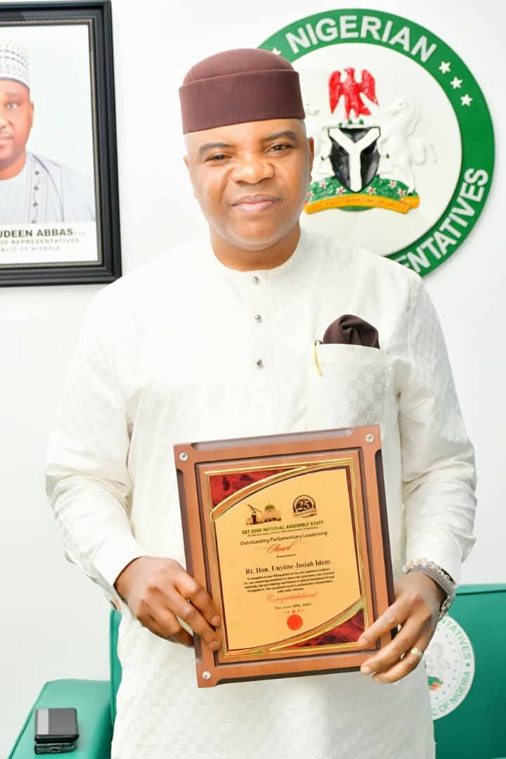 ABUJA, In recognition of his outstanding contributions to legislative duties and constituency representation, the member representing Ukanafun/Oruk Anam Federal Constituency and Chairman of the House Committee on Public Procurement, Rep. Unyime Idem, has been conferred with the Outstanding Parliamentary Leadership Award by the Year 2000 set of National Assembly staff.